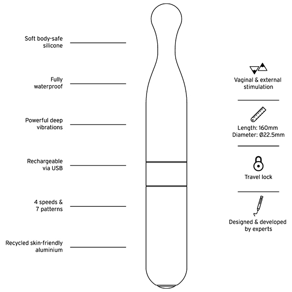 | Love Not Warバレットシリーズは、美しいデザイン性とサステナブルであること、どちらも兼ね備えた素材「リサイクルアルミニウム」をベースに作られています。 お肌に直接当たる先端部分は、ふんわりとソフトな心地よいシリコン。 表面がベタつかず、なめらかですべすべしています。 柔らかさを保ちつつもホコリは付きにくく、洗い流してお手入れすることが簡単です。 撫でるように繊細な振動から、お腹の中心に向かって響きわたるパワフルな振動、さらに、リズミカルな脈動まで、全10種類のバラエティに富んだ振動パターンを選べます。 ボタン一つでシンプルな操作。 便利なのはトラベルロック機能。 カバンの中で電源がオンになってしまう…まさかの事態を防げます。 30分以内であれば1mまで浸水可能な完全防水仕様なので、万が一浴槽に落としてしまっても安心。 バスルームでも楽しめて、使える幅も広がます。 ●素材:シリコン、リサイクルアルミニウム、リサイクルABS樹脂、バイオプラスチック●充電方法:USB●充電時間:フル充電2時間●連続使用可能時間:最大1時間●振動パターン:10(振動強弱4段階+リズムパターン6種)●防水:完全防水(IP67)●トラベルロック機能つき ※こちらの商品は受注発注商品の為、ご注文から発送までに3、4営業日掛かる場合が御座います。 |