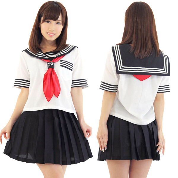 | 赤いスカーフがポイント!人気の定番セーラー服コスプレ。 涼しげな夏服仕様の半袖タイプ!襟元や袖のオーソドックスな3本ラインが超リアル!ミニ丈のプリーツスカートがセクシーなスクール系コスチュームです。 ※Lサイズ(b17496)、LLサイズ(b17522)あります。 |