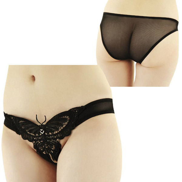 | <EROX>大きく広げた黒蝶の羽がゴージャスな、セクシーオープンショーツ。 優雅に舞うバタフライデザインが魅力的!クロッチ部分は、大胆なオープンタイプ!バックスタイルは、安心のフルバック仕様。 素敵な夜を演出するセクシー下着です。 |