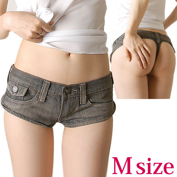| ショーツ感覚で新しい履き心地!?デニムが超セクシーなデザインになって登場!前から見たらオシャレなグレーのホットパンツ。 だけど、後ろから見るとまるでTバックショーツみたいにお尻が丸見え!お尻フェチにはたまらないセクシーさ!特別な日や刺激的なコトがしたい時、彼を驚かすのにピッタリのコスチュームです!こちらはMサイズ。 ※XLサイズ(b18364)あります |