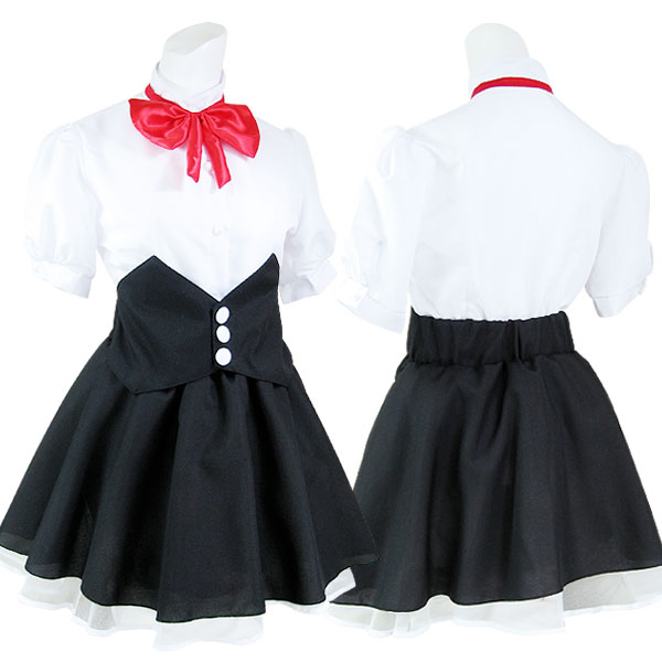 | コルセット調のふんわりスカートが特徴的!赤いリボンが可愛いウェイトレス風の制服コスチューム。 シャツの袖はパフスリーブになっていて、女の子らしさを惹き立てます!フリルカチューシャもセットになった、キュートなコスプレ衣装です。 |