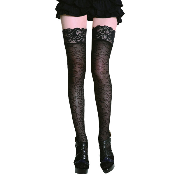 ちょっぴり高級感漂う刺繍レースは、ガーターベルトとの相性バッチリ!甘辛ミックスで、足元をオシャレに演出するセクシーストッキングです。