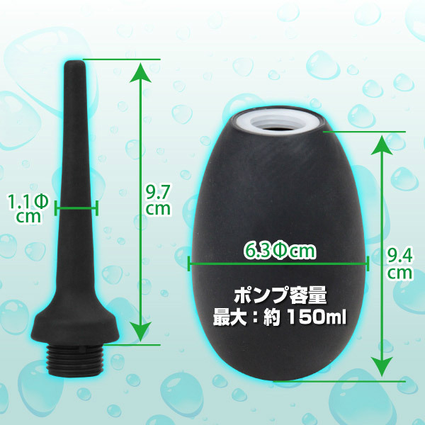 | 洗浄も快感もお任せあれ!アナルにぴったりな使いやすい150mlサイズの洗浄器。 ポンプを押して先端のノズルから中の液体を発射する仕組み。 ポンプの中にローションを注入すれば、アナニーに最適なアナルディルドに!また、液体を注入すればプレイ前後の洗浄器具としても使える優れもの。 肌に優しく挿入もしやすい、シリコン製のアナルグッズです。 ココローション30ml付き。 ※専用の取替ヘッド(b19707)(b19708)(b19709)(b19710)(b20854)も販売中です。 |