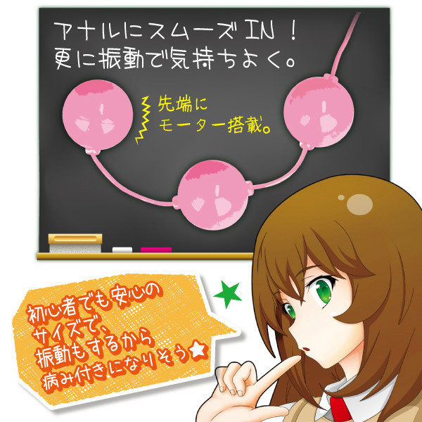 | 大きすぎず、小さすぎない!ちょうどいいサイズだから初心者から上級者まで満足できる、アナル専用ローター「わたしが選んだとっておきっ」。 3つ並んだボールのうち、先端のボールだけにローターを搭載!3段階の強力振動がじんわりとした快感を伝えます。 また、操作部本体の先端にブルーLEDを搭載!秘部をイヤらしく照らしてくれるので、ムード作りもバッチリ!見て、使って、大満足できるアナル専用ローターです。 単四電池×3本付属。 |