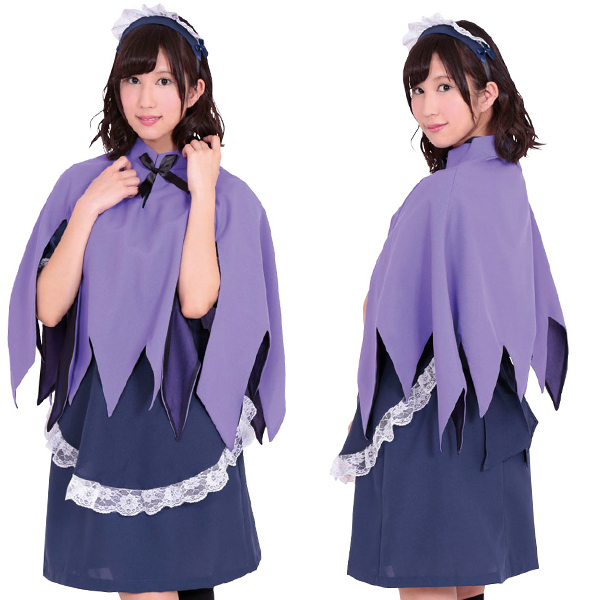 | ゴシック調の古い洋館が似合いそう!ミステリアスな紫のマント付きメイドコスチューム(M)。 丸襟が可愛いワンピースとエプロン・カチューシャは、ネイビー×白フリルでエレガントに。 神秘的な雰囲気を感じさせるクラシカルなメイド服コスプレです。 |
