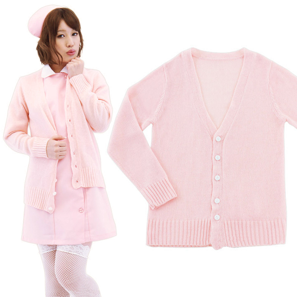 | ナース服にぴったり!サッと羽織れて便利な、やさしいピンク色のカーディガンです。 ナース服のコスプレ衣装を持っているなら、ぜひどうぞ!シンプルで可愛いボタンオープンタイプなので、お医者さんの白衣にも似合う薄手のカーディガンです。 ※カーディガンのみの販売となります。 |