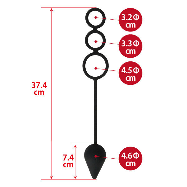 パッケージ:20.0×13.0×5.5cm 本体:全長:37.3cm 内径小3.1φcm・中3.1φcm・大4.5φcm プラグ部分:7.3×4.6φcm |
