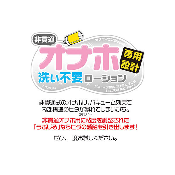 | リアルな刺激と快感に近づく第一歩!非貫通型オナホール専用の洗い不要アロマローション「うぶじる」 370ml ストレートタイプ。 このローションを使う前に、まずはお気に入りのオナホを用意してしっかり空気抜き!その後に本製品を注入します。 モミモミして全体に馴染ませたら準備OK!妄想が膨らむローズの香りに包まれながら、心も身体もムスコも癒されて下さいね。 |