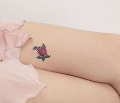 | 首すじ・胸元・腕・足首、アナタならどこに貼る?ただ一箇所に貼るだけでもセクシーに見せられる薔薇柄の本格的な刺青シールです。 入浴はもちろん、プールや海に入っても剥がれないので安心してオシャレを楽しめるファッションアイテム。 皮膚の動きに合わせて伸び縮みするので、剥がれるまでキレイなまま!パーティーやお祭りといったイベントにオススメなボディシールです。 |