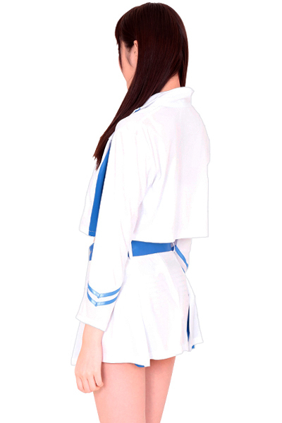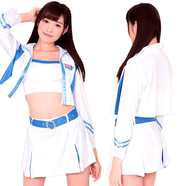 | 「あたしが来たからには絶対に負けないぞ!」ヘソ出し&ミニスカのセクシーな衣装で全力応援する、レースの女神様!白×水色の色使いが爽やかな印象を与える、レースクイーンコスチューム。 ジャケット・スカート・ブラ・ベルトの4点セットです。 |