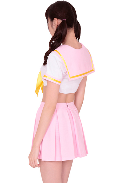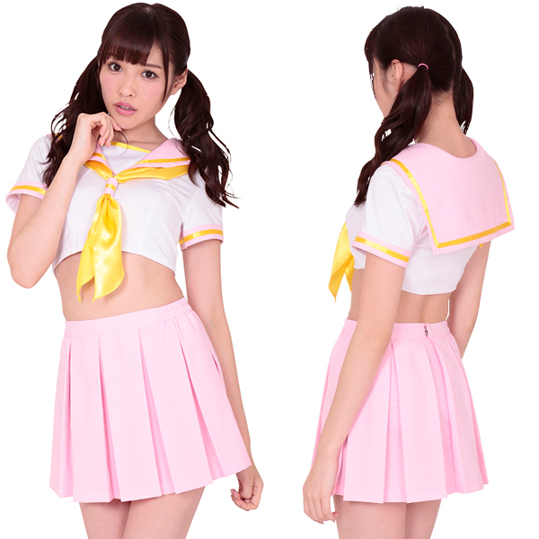 | まるでお菓子みたいにキュート♪優しいパステルカラーのセーラー服コスプレ。 ●ピンク・白・黄色のカラフルなセーラートップス●夢見るピンクのプリーツスカート●ファンシーな黄色のスカーフタイ。 ヘソ出しのミニ丈でセクシーさもプラス!女の子らしいパステルカラーの3色をバランス良く取り入れた甘々なメルヘンデザインで、キュートな女子校生になれる制服コスチュームです。 ※ストッキングは付属しません。 |