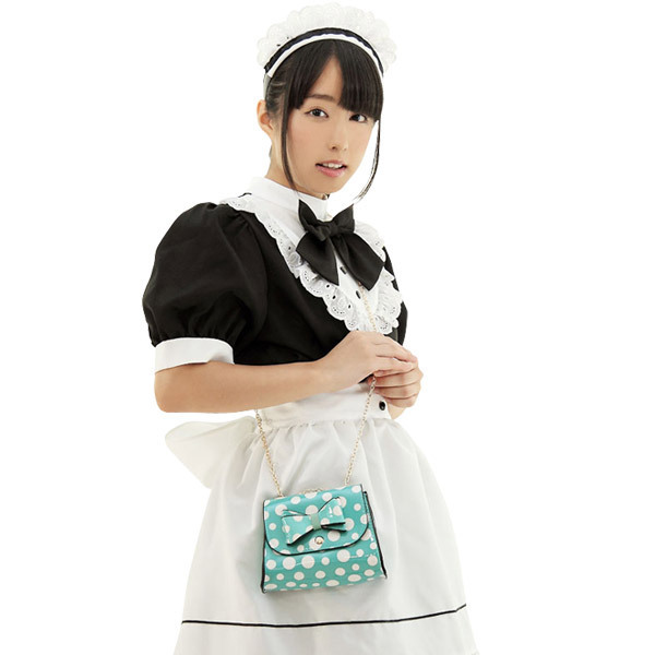 | 明るいブルーに白ドットを散らしたチェーンストラップのミニポシェット単品。 ●はじけるシュワシュワ感・ソーダみたいな水玉プリント●フラップにリボンを飾って存在感をプラス●可愛く斜めがけ・華奢な金色チェーン。 たっぷりとフリルを使ったボリュームがあるコスチュームにマッチする、ミニマルサイズの台形ポシェットです。 ※こちらの商品は受注発注商品の為、ご注文から発送まで2〜3営業日掛かる場合が御座います。 |