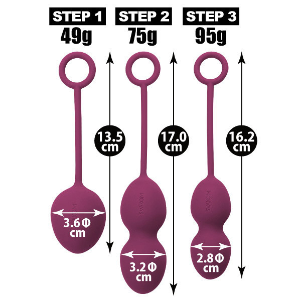 | こっそり鍛えて女子力UP♪悩める大人女子の強い味方になってくれる膣トレグッズ。 ●シックで妖艶なバイオレットカラー●形状&重さの異なるノバボール3種入●滑らかでマットな質感のシリコン製●それぞれ内部にメタルボールを内蔵●まずは49gからスタート→75g→95gと徐々にサイズ&レベルアップ●それぞれ1日30分程度を30日間継続●挿入したままスポーツなども可能●100%完全防水で丸洗いOK。 体の動きに合わせてランダムに動くメタルボールを感じよう!最終段階まで進めば、眠っていた骨盤底筋の目覚めを感じられるはず。 ソファなどに座りリラックスした状態か、立った状態で片足を上げると挿入しやすくなります。 ※こちらの商品は受注発注商品の為、ご注文から発送まで2〜3営業日掛かる場合が御座います。 |