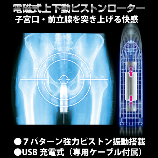 | 敏感部分の最奥まで響く!電磁石によるリニアピストン機能を内蔵した弾丸型のシングルローター。 ●ゴージャスなゴールドカラー●便利なUSB充電式●充電90分で約1時間の連続使用可能●充電中→赤ランプ点灯/充電完了→青ランプ点灯●アソコ&アナルのどちらにもスムーズに挿入できる細身ボディ●7種類の強力振動を搭載●リニアピストン機能付きで楽しさ倍増●ボタン長押し→電源ON/押す度にパターン切替え●長押し→電源OFFはどのタイミングでもOK●専用ケーブル・AC変換アダプタ付属。 電磁石の反発を利用して上下にピストン運動!子宮口・前立腺をズンズンと激しく突き上げて極上の快感を生み出す、満足感の高い男女兼用ローターです。 ※初回は必ずフル充電してからご使用ください。 |