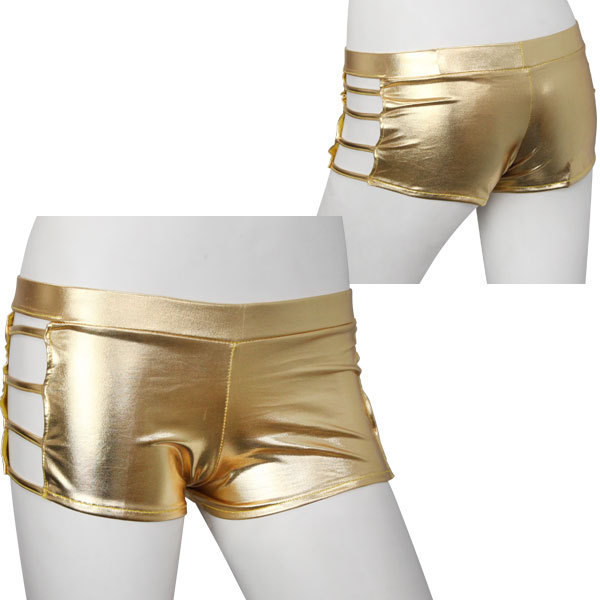| サイド魅せでセクシーに♪ド派手なメタリックゴールドのホットパンツ。 ●眩しいメタリックゴールドカラー●サイドはラダーデザインで肌魅せ●伸縮素材でお尻にフィット。 ヒップラインを輝かせる超ド派手なカラーはダンス衣装にもピッタリ!素肌を覗かせるサイドデザインでセクシーさも◎なコスチュームです。 |