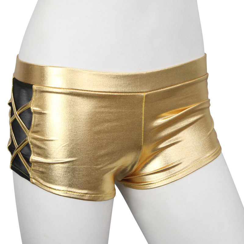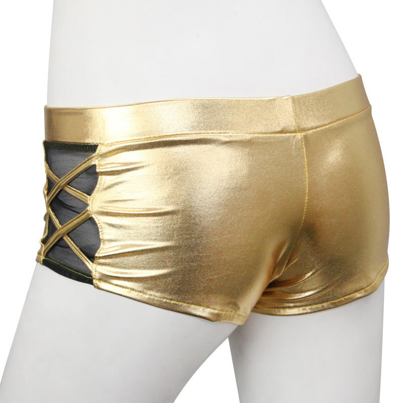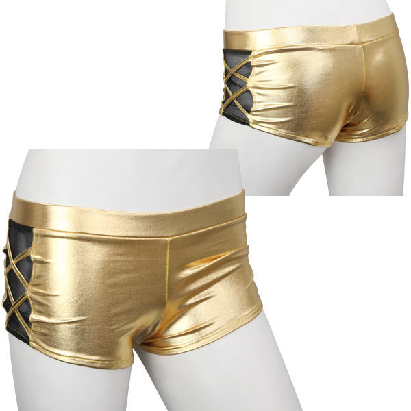 | 穿くだけで注目度ナンバーワン!メタルに輝くセクシーホットパンツ。 ●メタリックなゴールドカラー●光をキラッと反射するきらめき●ローライズ気味なホットパンツ●両サイドにダブルクロスデザイン●シースルー生地を添えて妖艶に。 ただ隠すよりもシースルーによる透け感でセクシーさがさらにUP!ショーやイベントなど目立ちたいシーンで活躍してくれるコスチュームです。 |