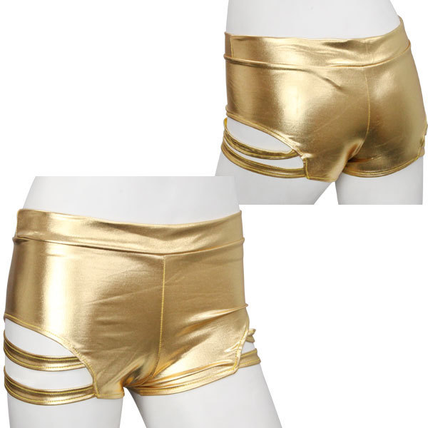 | サイドのカット部から覗く素肌がセクシーなメタリックホットパンツ。 ●光沢感抜群!高級感のあるメタリックゴールド●サイドはオシャレ且つセクシーなカッティングデザイン●Mサイズ。 ダンスコスチュームと相性バッチリ!思わず踊りたくなるセクシーコスチュームです。 |