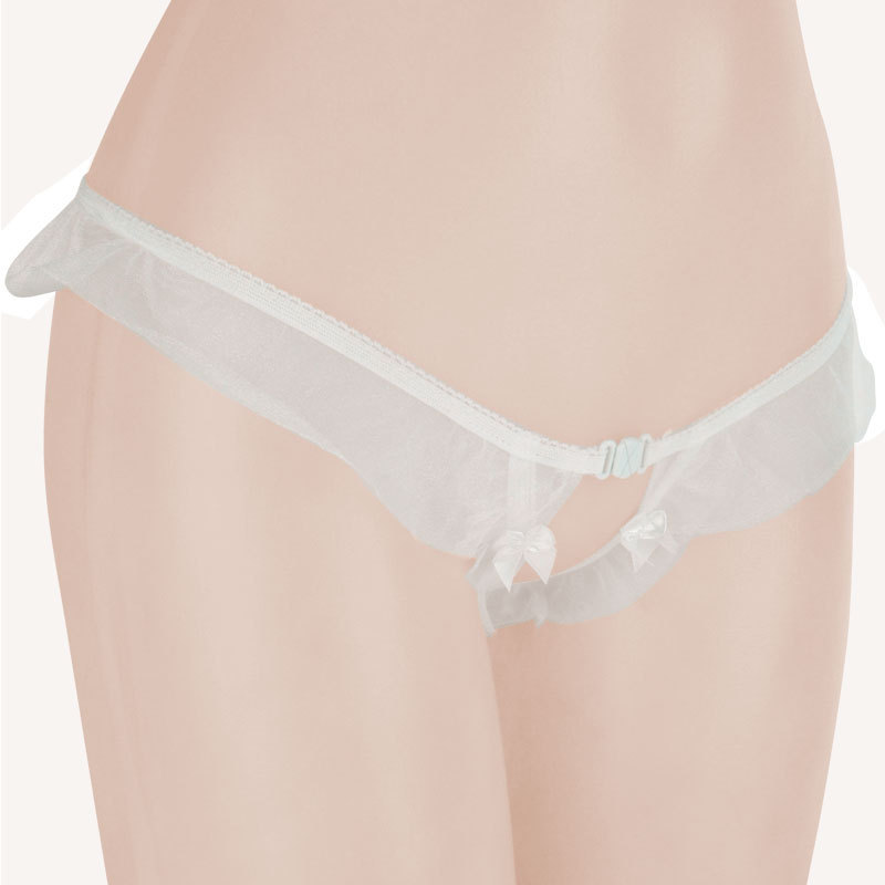 | たっぷりフリルが可愛い!大人なギミックが隠されたセクシーショーツ。 ●天使の羽のような柔らかホワイト●ウエスト周りに幅広フリルをプラス●リボン付きフロントはオープン仕様●フリルによるTバックデザイン●クロッチに大粒パール内蔵済み。 ただのオープンショーツと思ったら大間違い!見た目だけでなく着心地までセクシーな大人ランジェリー。 リボン+フリル+パールのロマンチックなデザインです。 |