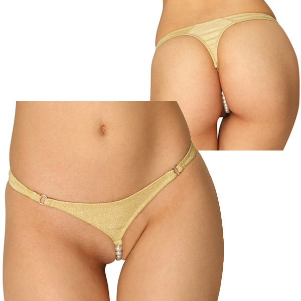 トップページ > ランジェリー > オープン ブラ・ショーツ(穴あき) > ラメ入り生地パール付きGスト ゴールド