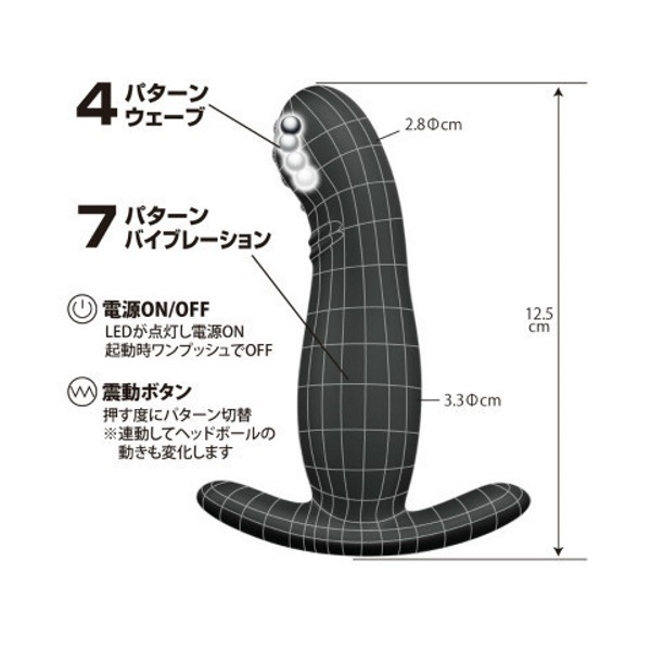 | 指先でこねくり回されるような新快感!高性能な前立腺責め電動アナルプラグ。 ●肌触りの良い高品質シリコン●全長12.5cm・最大径3.3φcm●スムーズ挿入のスリムボディ●開発しやすいストッパー付き●丸みのある先端にはイボ突起●内部のボールが小刻みに上下●先端は4段階にウェービング●芯まで響く強力モーター内蔵●盛り沢山な7種振動パターン●簡単メンテナンスの生活防水●電源はUSB充電式。 先端のピンポイント刺激と強力バイブレーションで快感をお届け!美しいシルエットの先端に特殊ギミックを仕込んだ「プリティラブ」シリーズの電動アナルグッズ。 イボ内側の内蔵ボールが上下して、中からグリグリと圧迫するように前立腺を刺激!スムーズに挿入できるスリムボディで、アナル入門者の開発用にもオススメです。 |