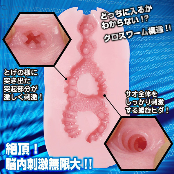 | この快感、まさに無限大!内部が複雑に分岐した画期的なクロスワーム構造オナホール。 ●安定感のあるスクエアフォルム●大人気のもち柔おなぺっと素材●挿入直後に内部が二つに分岐●コリコリ高刺激のイボ膣道●絡みつくヒダ螺旋膣道●奥へ進むとさらに分岐が…。 ベストな快感はどっち?異なる膣道がまるで迷路のようにクロスしたオナホール。 貴方の意思とは裏腹に、イボ+イボ、螺旋+イボ…とピストンの度に訪れるランダムな快感をお楽しみ下さい。 |
