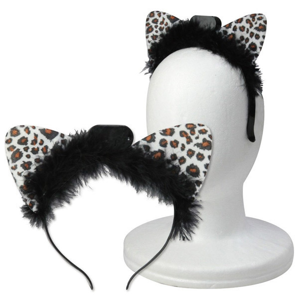 イルミネーションネコ耳カチューシャ ホワイトアニマル柄
