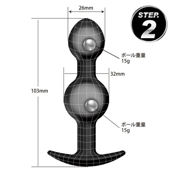 | 内蔵ボールが中からノック!心地良い刺激がクセになるシリコン製アナルグッズ「プリティラブ スペシャルアナルプラグ STEP2」。 ●全長10.3cm×最大径3.2φcm●大小2連団子型の「STEP2」●ストッパー付きのプラグ形状●安心安全な高品質シリコン素材●重さ15gのメタルボールを2個内蔵●自在に動いて存在感をアピール。 アナル開発や日常装着用に♪コンッコンッとノックするような刺激を楽しめるメタルボール入りアナルプラグ。 ミドルサイズボディの「STEP2」は、2つのメタルボールが各々動くランダム刺激を楽しめます。 |