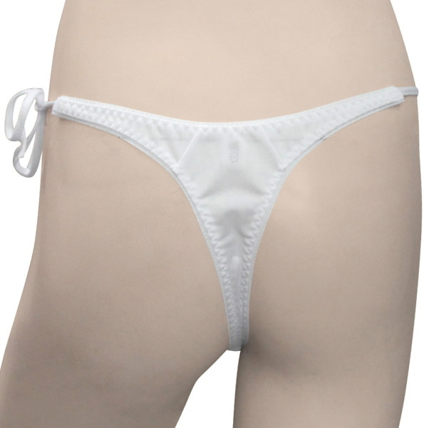 トリコット生地フラワーレース脇紐オープンTバック ホワイト