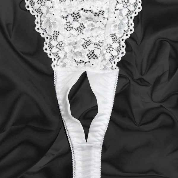 トップページ > ランジェリー > オープン ブラ・ショーツ(穴あき) > トリコット生地フラワーレース脇紐オープンTバック ホワイト