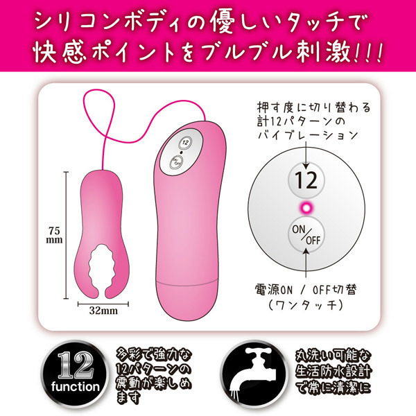 | あなたはどっち派?敏感部分をピンポイントで刺激する電動グッズ「外イキローター」。 程よい柔らかさのシリコン製ボディ!優しいタッチのアーム2本でクリトリスや乳首を挟み込むようにブルブル刺激します。 ボタンを押す度に切り替わる多彩で強力な計12パターンの振動機能を搭載!さらに敏感ポイントだけでなく、アームで男性器を挟んでの刺激も可能です。 外イキ派垂涎、至高フォルムのピンクローター!丸洗い出来る生活防水仕様でいつでも清潔に使えます。 |