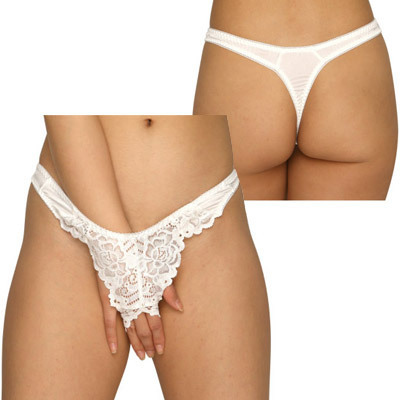 トップページ > ランジェリー > オープン ブラ・ショーツ(穴あき) > トリコット&レース生地オープンクロッチTバック ホワイト