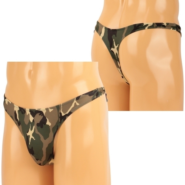 トップページ > ランジェリー > メンズ ショーツ・ビキニ > メンズ ストレッチ迷彩プリントTバック グリーン