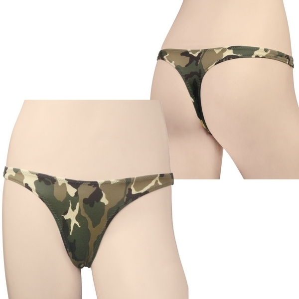 | ミリタリー女子の魅せパンにも♪全面プリントの迷彩柄レディースTバックショーツ。 ●グリーン系のカモフラ柄ショーツ●ストレッチ生地で上下左右に伸縮●ボディにフィットして着心地抜群●セクシーなTバックタイプ●女性用Mサイズ・日本製。 カジュアルなカモフラージュ柄を全面にプリントした、ワイルド&セクシーなランジェリーです。 |