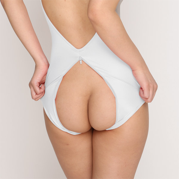 ウェット生地 前後ダブルファスナーレオタード ホワイト