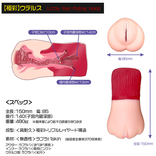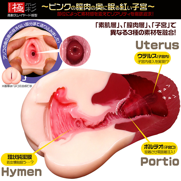 | 禁断の子宮脱プレイ!異なる3種の素材が融合した究極のウテルス(子宮)セックスオナホール「極彩 ウテルス」。 ●マジックアイズの極彩シリーズ●インパクト抜群のツートンボディ●素肌層、膣層、子宮の3種素材●すべすべ素肌のアウター部●膣肉ピンク色のインナー部●真っ赤に充血したウテルス部●挿入口付近に環状膜を配置●優しく包み込む柔らかな質感●高弾力な子宮口がお出迎え。 部位によって素材感を変え、リアリティを徹底追求した極彩トリプルレイヤード構造!リアルなポルチオ感触を味わえるウテルスオナホール。 ローションをたっぷり使えばギチギチの子宮内に侵入できるかも?柔肌と膣内の優しく包み込む柔らかな質感と、締まり抜群の高弾力な子宮の異なる挿入感をお楽しみ下さい。 |
