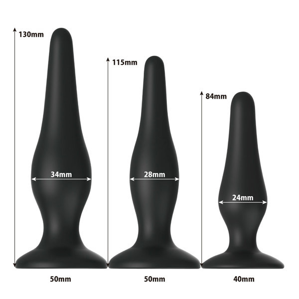 | 3つのサイズでステップアップ♪初心者さんにオススメな拡張アナルプラグ3本セット「プリティラブ ビギナーズアナルキット」。 高品質シリコン素材のボディは大中小の3サイズすべてが無理なく挿入しやすい流線形状!底部には固定できる強力吸盤付き。 徐々にサイズを大きくしてステップアップできるビギナーのお尻開発に最適なアナルグッズセットです。 |