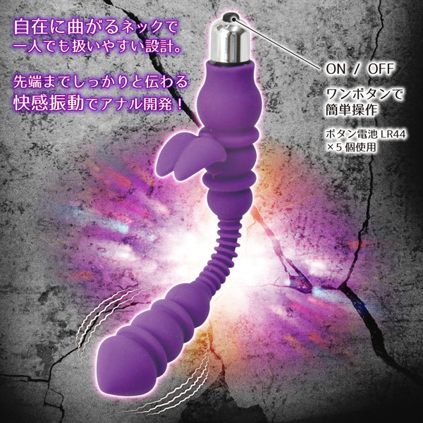 | 奥の奥まで響いて貫く衝撃快感!フレキシブルボディのアナルグッズ「激槍(げきそう)ランサー」。 高品質シリコンを採用した凸凹のリング状ボディがアナルをほぐしながら奥まで届きます。 さらに、先端までしっかりと伝わる強力バイブレーションが前立腺を直撃!自在に曲がるフレキシブルネックと、ワンボタンの簡単操作で一人でも扱いやすい設計です。 ボタン電池LR44×5個付属。 |
