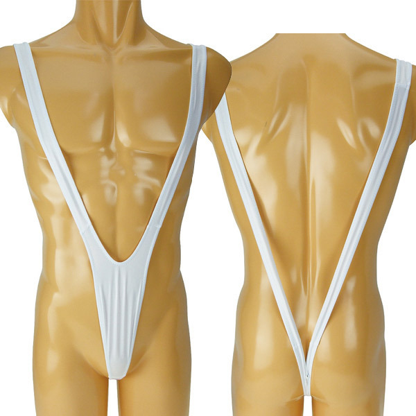 | 男のおしゃれは下着から!大きくV字に開いたスリングショットデザインのメンズショーツ(ホワイト)。 縦のラインを強調するマンキニ風のサスペンダーデザイン!男性の魅力を最大限に引き出すワイルドでセクシーなメンズランジェリー。 肌に馴染むストレッチ生地で着心地も良好!背面は食い込み度の高いTバックで後姿に一段と潔いセクシーさを感じさせてくれます。 |
