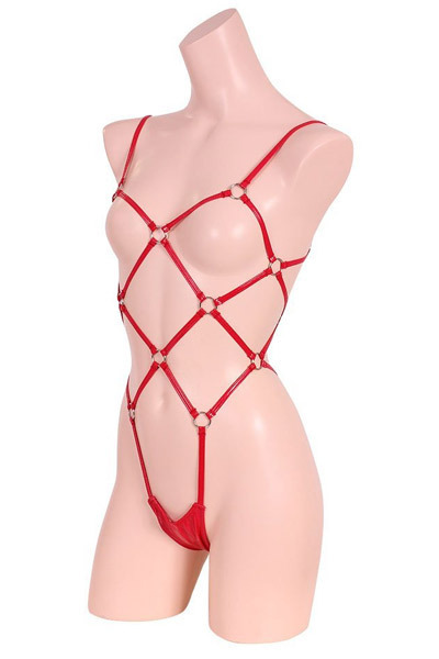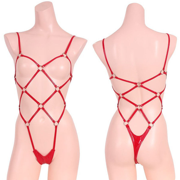 トップページ > SMグッズ・拘束具 > ボンテージ > エナメル&リング亀甲プレイスーツ レッド