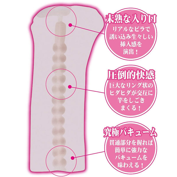 | イイオンナ、みおのモチ肌と極上快感で昇天必至!とろける極上刺激のオナホール「イイオンナ、ヤリ放題 篠崎みお」。 みおちゃんの優雅で無垢なボディをイメージした入り口はリアルなビラで生々しい挿入感を演出!その後、巨大なリング状のヒダヒダが交互に竿を刺激して最高の快楽へと導きます。 さらに貫通部分を塞げば簡単にバキューム刺激も体感できる一挙両得なオナホールです。 |
