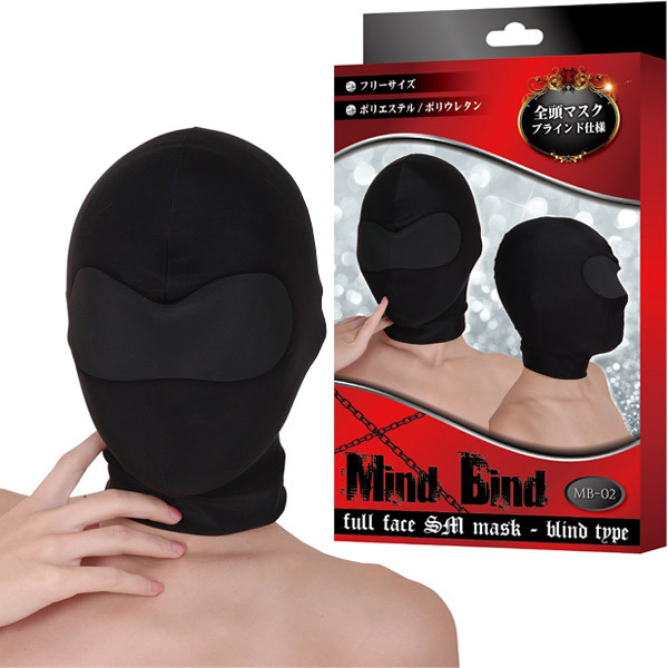 | いつものプレイが過激に変貌!視界を完全に奪うブラインド仕様のSM全頭マスク「マインドバインド 全頭マスク ブラインド仕様 MB-02」。 目の部分がアイマスクのような二重生地になっているので、視界を完全にシャットアウトできます。 ポリエステル、ポリウレタンを使用した薄手のストレッチ素材が伸縮して顔全体にフィットする男女兼用のフリーサイズです。 |
