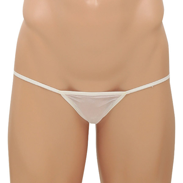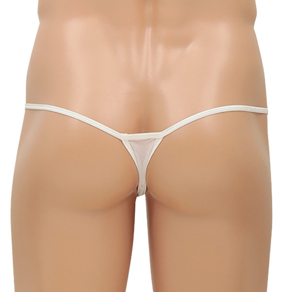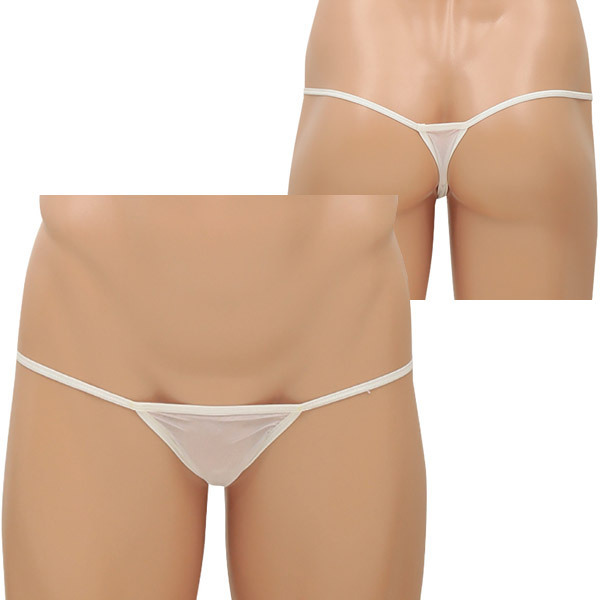 | <EROX>メッシュデザインでセクシーに魅せる大人のメンズランジェリーシリーズ!ホワイトカラーのサイドストリングTバックショーツ「ニューナンブ」。 スパンデックス5%、ポリエステル95%。 |