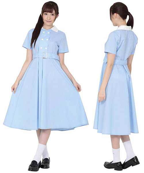 | さわやかな印象を与えてくれる女子高生ブレザーの制服コスプレです。 清楚なパステルブルーのカラーに白襟が、上品な印象と少女らしさを兼ね備えた可愛らしさを演出してくれます!ワンピースタイプでふんわりと広がるガーリーなスカートは、自然なスリットも入っていて学生気分に浸りたいときにもオススメ。 襟には真っ白な6つのダブルボタンが付いているため、アニメに出てくる制服のような可愛らしさを併せ持っています!イベント用としてもどうぞ。 |