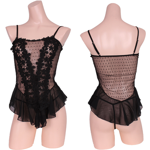 トップページ > ランジェリー > ベビードール > フリルとレースで可愛さ増しベビードール&Tバックセット ブラック