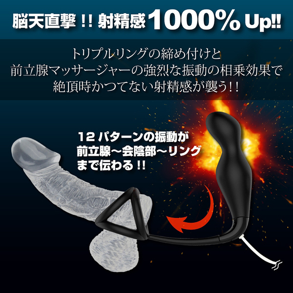 | 前立腺からペニスまで、広範囲の刺激が味わえる!電動エネマグラの登場です♪先端部は最大2.2cm、胴体部分は最大2.7cmの幅で凹凸感を楽しめるデザインとなっています。 本体の大きさは8.3cmと少し小ぶりですが、12パターンもの強力振動を搭載!アナル内部でエネマグラが振動することで前立腺を刺激し、そこからコードが回り込むようにして会陰やペニスへと振動を響かせつつ、トリプルリングの締め付けで強烈な相乗効果を生み出します♪絶頂時には全身を電気が走り抜けるような射精感が襲いかかり、アッという間に果てていることでしょう。 本体の素材はお肌に優しい高品質医療用シリコンを採用!生活防水も搭載されているのでお手入れ楽々♪また、オンオフはボタンを2秒長押しするだけの簡単操作だから扱いやすいのもポイント。 手軽な電動エネマグラで、貴方もかつてない射精感を体験してみませんか? |