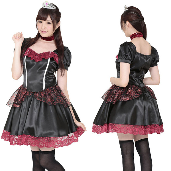 | 深夜0時を過ぎれば闇のプリンセスのお出まし!ダークでゴシックな雰囲気が味わえるハロウィンコスプレ衣装。 黒の艶やかな生地にアンティークな風合いのレッドスカラップレースをあしらい、ウエスト周りには蜘蛛の巣デザインのレースを施したゴシックスタイル!付属している真紅のチョーカーとキラキラ輝くティアラを身に付ければ、気分はもう闇堕ちプリンセス♪ハロウィン気分を更に盛り上げるなら、タトゥーシールを貼ってみるのも◎ |