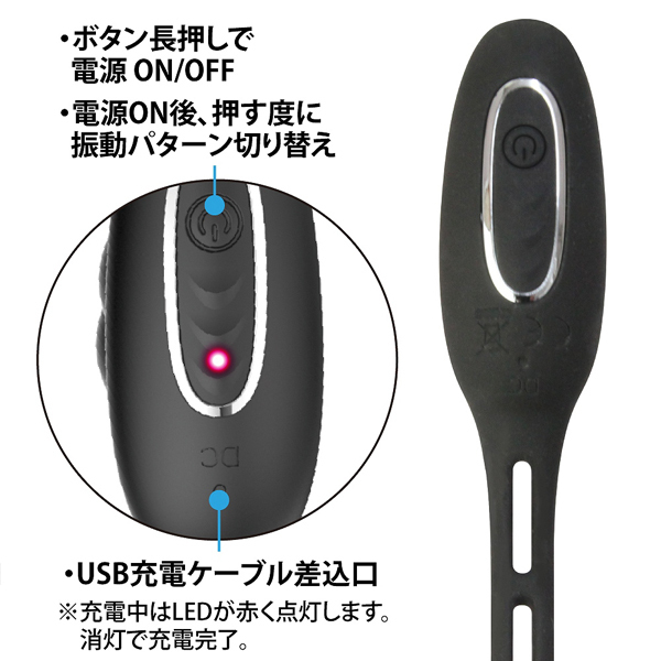 | 前立腺を刺激して勃起力・射精感を向上!更にダブルリングによる締め付けで持久力を高めメンズを徹底サポートするバイブレータ。 挿入時前立腺を捉える絶妙なフォルム●高品質シリコン素材●12パターン強力震動●静音設計●生活防水●USB充電式(コード付属) |
