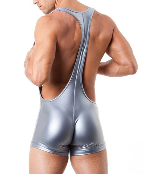 インパクトある鉄板サスペンダボクサーショーツ シルバー