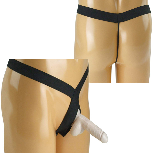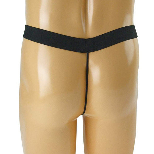 | 伸縮性のある黒の太ベルトで男性器を支える日本製Tバック。 会陰やお尻を刺激するゴム球付きで、細めの紐がお尻の割れ目に食い込むセクシー仕様! |