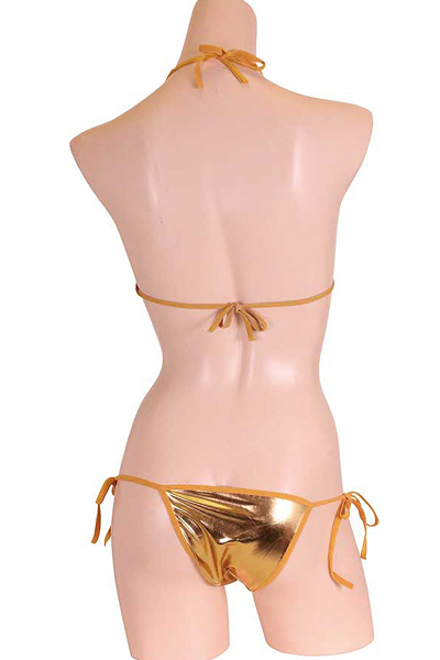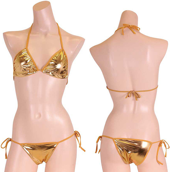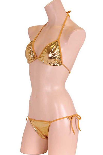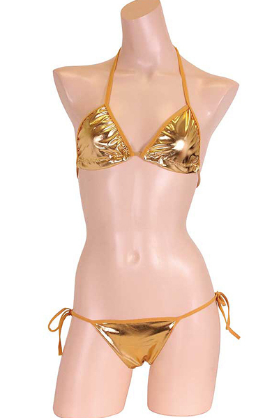 | 夏の海で美ボディを魅せつける!メタリック生地の存在感抜群なゴールドビキニ。 太陽も羨む輝きで男の視線を独り占め♪金色カラーの華やかな紐ビキニを着れば、誰もが貴女に注目する! ※こちらの商品は受注発注商品の為、ご注文から発送までに3、4営業日掛かる場合が御座います。 |